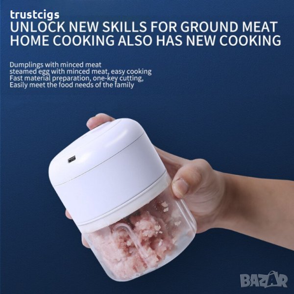 Този безжичен мини чопър ще направи приготвянето на храната по-бързо и по-лесно, предоставяйки ви контрол и удоволствие по време на готвене. С него лесно може да смелете и нарежете съставките си, за да създадете вкусни и хранителни ястия.