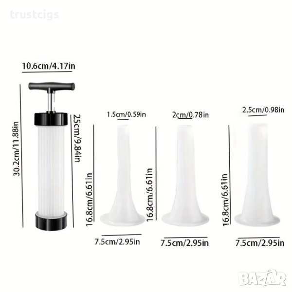 Дизайн: Наборът е дизайниран с функционалност и удобство на преден план. Прозрачната тръба ви позволява да следите процеса на пълнене, а висококачествената пластмаса гарантира безопасност и хигиеничност. Контейнерът има голям капацитет, което ви спестява време и усилия.