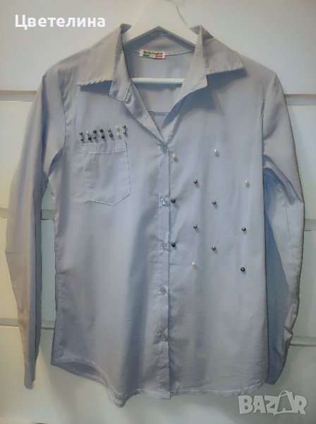 Дамска светлосиня риза с перли размер S цена 19.99 лв. + подарък перлени обички.