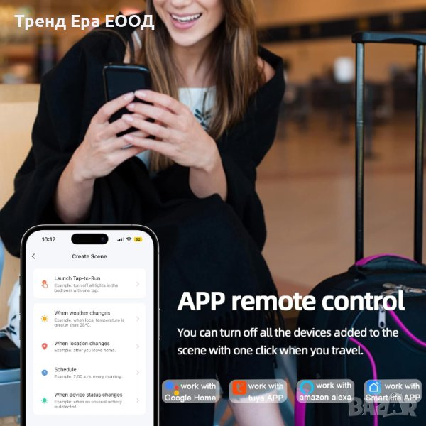 Интелигентният Wi-Fi превключвател може да работи с Alexa, Google Assistant, за да управлява вашите устройства чрез гласов контрол. Всичко, което трябва да направите, е да изпратите гласови команди, за да включите или изключите светлината. (Само за 2.4G мрежи)