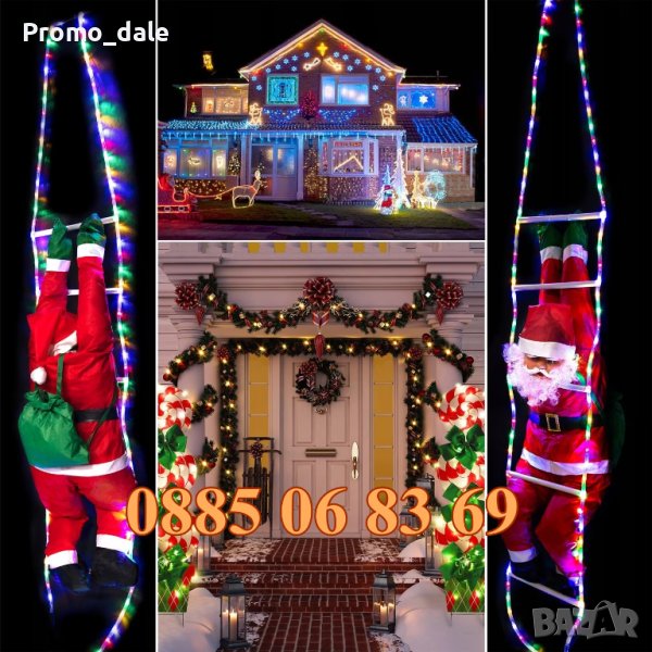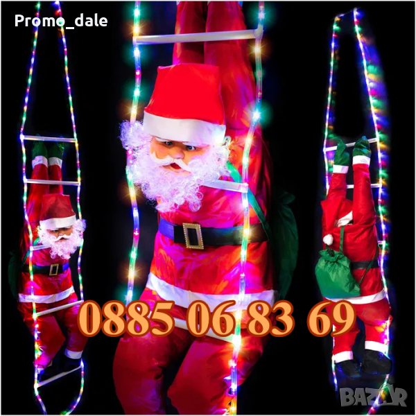 Катерещ се Дядо Коледа на стълба – чудесен коледен декор за дома. Коледна декорация подходяща за окачване на балкони и тераси. Играчката представлява кукла с форма на любимия старец Дядо Коледа, който се изкачва по стълба, за да донесе подаръци на децата.