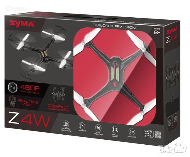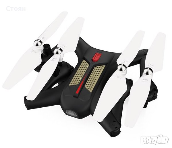 Дрон с автоматично кацане и излитане с един бутон, сгъваем с възможност за поддържане на определена височина. Има функции за приложения и се зарежда през USB. Времето за полет е 10 минути, а времето за пълно зареждане е 60 минути. Има контролер за обхват 30 метра. С 480P камера и възможност за видео предаване на живо. Използва 3,7 V Lipo 400 mAh литиева батерия за дрона (включена) и 4 AA батерии за контролера (не са включени).