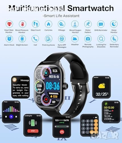 - Високотехнологичен Смарт Часовник: Позволява отговори и телефонни обаждания, следи активността, следи сърдечния ритъм, монитори на сън и стъпки.