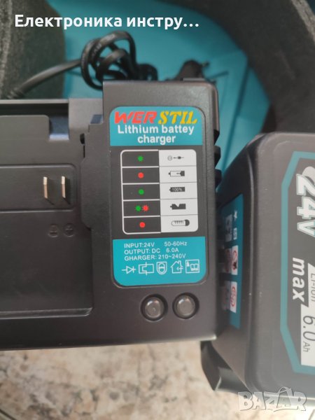 Акумулаторен безчетков ъглошлайф Werstil 24V 6,0 Ah + 2 батерии и зарядно