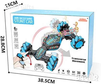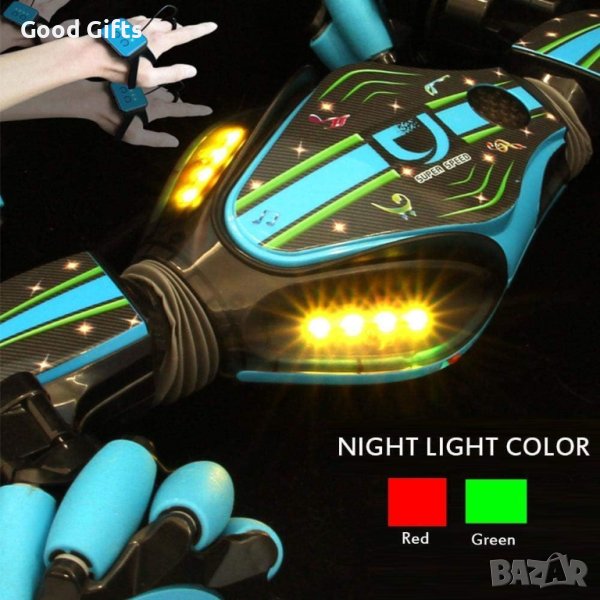 Кола трансформър с дистанционно управление и гривна за жестово управление с движения на ръката с четири посоки на движение, rc количка която се променя на офроуд бъги или на спортна кола с едно движение на ръката и развива до 30 КМ/ч.