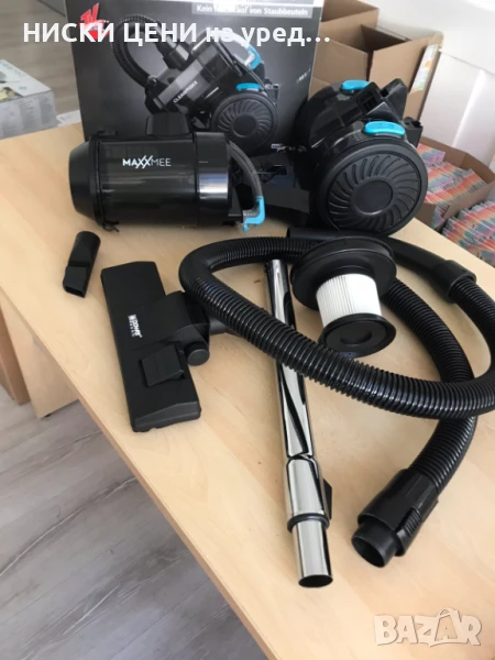 Циклонната прахосмукачка "MAXXMEE" се отличава със своето леко тегло и удобен дизайн, съчетан с циклонна технология без торба. В същото време можете лесно да го използвате за цялото си домакинство .Прахосмукачката с интегрирана циклонна технология включва специални дюзи за дървени подове, плочки, тапицерия, килим и много други.Компактна, удобна и лека. Това отличава най-новото поколение прахосмукачки от MAXXMEE .Дръжката за носене и вечният дизайн я правят идеален помощник в домакинството.С помощта на силни въртеливи движения, генерирани от много мощен 800-ватов двигател, мръсотията се транспортира надеждно в 2,5-литровия събирателен контейнер.Практична – контейнерът за събиране може да се изпразни супер лесно с натискането на един бутон. Автоматична макара за кабел .
