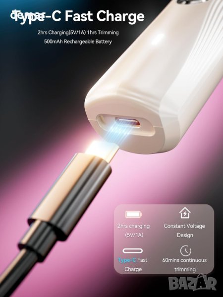 Комплектът електрическа дамска самобръсначка Unibono предлага обезкосмяване на цялото тяло с 3 подвижни режещи глави: традиционен тример, тример за бикини и самобръсначка за лице за прецизно подстригване на окосмяването по лицето и тялото. Главата за подстригване на бикини включва 3 mm предпазен гребен за безопасно и прецизно оформяне. С мощен мотор с 6000 RPM, той осигурява ефективно и безболезнено обезкосмяване с минимален шум. Бързото USB-C зареждане осигурява 60 минути непрекъсната употреба след 2 часа зареждане, предлагайки разнообразни опции за зареждане. Подходящ е за мокра/суха употреба, лесен за почистване и се доставя с чанта за съхранение за преносимост. Обмислен и елегантен избор на подарък за жени.