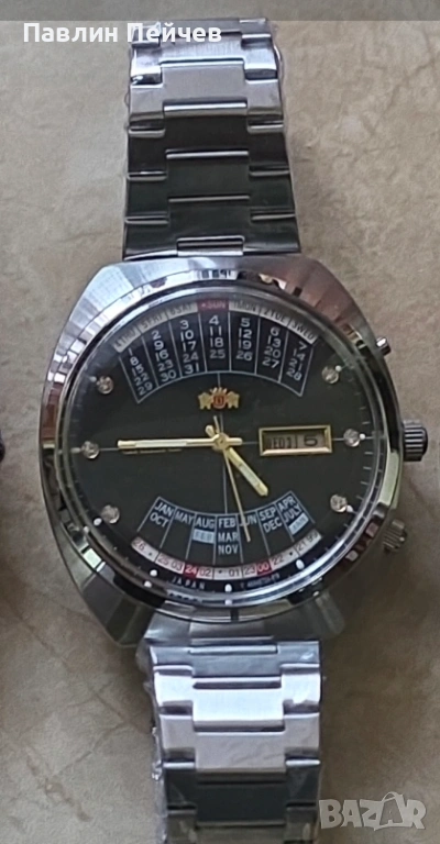 Ориент вечен календар ,класика,,в перфектно състояние работят перфектно и точно,,,допълнителни въпроси на посочения телефон , на съобщения неотговарям