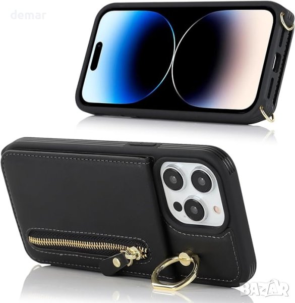 iPhone 14 Pro 6,1 инча, проектиран с мисъл за вашето удобство и стил. Този калъф разполага с 4 слота за карти, 1 джоб с цип, 1 дълга връзка и 1 пръстен за пръсти за допълнителна функционалност. Каишката за телефон може да се носи на гърба за удобство и стил. Прецизните изрези осигуряват лесен достъп до бутоните, камерата, високоговорителя и микрофона. Качеството и издръжливостта са от първостепенно значение, тъй като използваме първокласни материали, за да защитим телефона ви от надраскване, удари и изпускане. Въртящият се на 360° държач за пръстени подобрява използваемостта на вашия телефон за различни дейности.