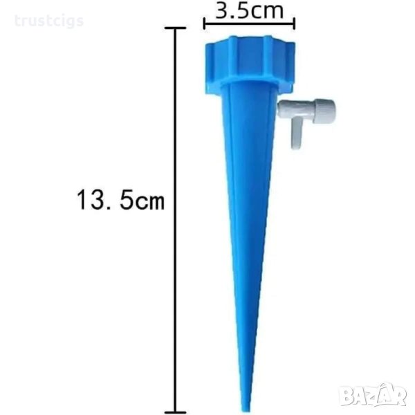 Комплектът включва 10 уреда за напояване. За да ги използвате, трябва просто да пробиете дупки в долната част на бутилката с вода и да ги поставите в бутилката. Този уред за поливане е подходящ за бутилки на марките: Pepsi, Coca-Cola, Ice Tea, Lipton, Dasani или други бутилки с вътрешен диаметър от 2,8 см.