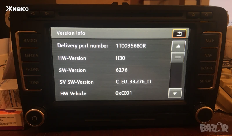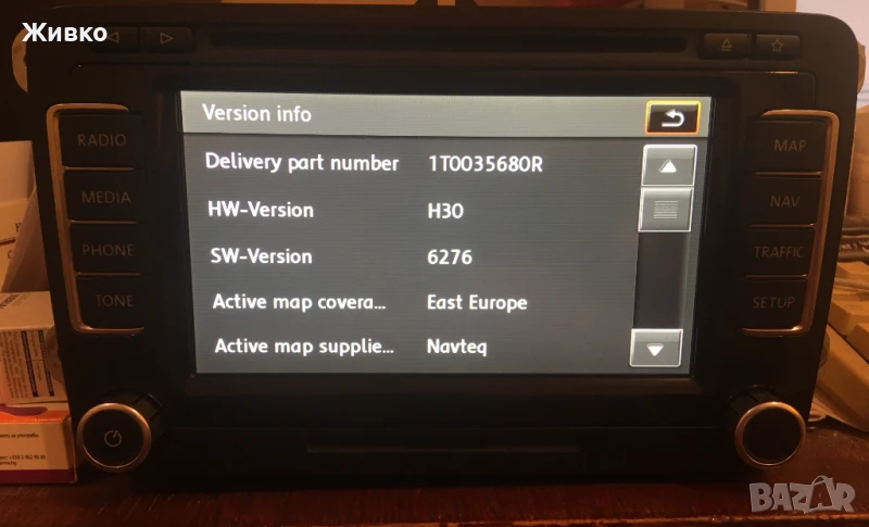 RNS510 с парт номер 1T0 035 680 R (C14) произведена 12.2013 г. с LED дисплей, SSD диск 30GB, слот за SD карта до 32GB, CD MP3/DVD диск, FM/AM тунер. Устройството e с хардуер HW: H21 и софтуер SW: 6276, в безупречно състояние и без следи от употреба по корпус и дисплей. Навигацията е с отключен VIM (Video In Motion), което позволява гледането на DVD дискове дори и при движение на автомобила. Активирано сервизно меню и наличен код за активиране на друг автомобил! Навигационна карта е последната официална на VW за Източна Европа - East Europe 8555 (V17) от 2020 г., инсталирана от двуслоен оригинален DVD диск. Инсталирани са актуални камери за скорост за България и цяла Европа. По желание може да бъде кодирана спрямо екстрите на Вашия автомобил. За предпочитане е лично предаване и тест на място за София или Стара Загора, за страната доставка с Еконт или Спиди. Ненарушена цялост на гаранционните етикети! Мултимедия е свалена от VW Tiguan 2014.
