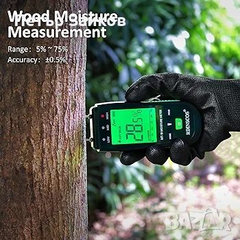 ✅ ЗВУКОВИ / ВИЗУАЛНИ ПРЕДУПРЕЖДЕНИЯ ЗА СЪДЪРЖАНИЕ--Забийте щифтовете от неръждаема стомана в повърхността на това, което измервате, за да получите показание. ниско, средно и високо съдържание на влага и зелени, жълти и червени LED визуални и пчелни сигнали.