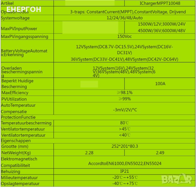 Благодарение на ПЪЛНАТА MPPT функция този контролер може да достигне с