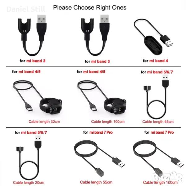 Зарядно устройство за ВСИЧКИ Xiaomi Band 9/8/7/6 Pro /Redmi Watch 3/Watch2 Lite/Redmi Smart Band Pro