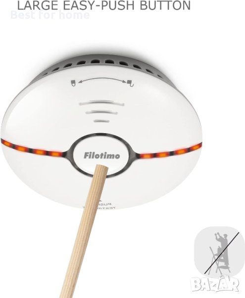 Wi-Fi димна аларма Filotimo, пожароизвестителен детектор за дим с голям бутон за заглушаванe