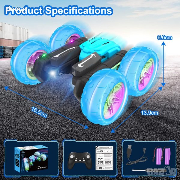 Immver каскадьорска кола за деца 2,4 Ghz радиоуправляема , синя