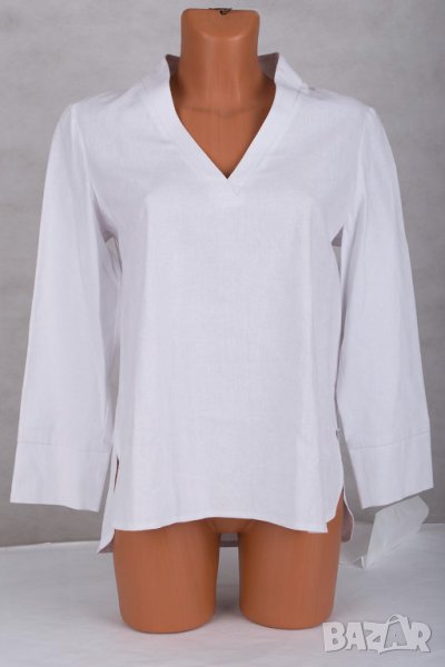 Забележка: Контрастни нишки на места, тъй като материята е от естествени влакна. Според мен това с нищо не сваля от качеството на блузата. Показала съм на снимките.