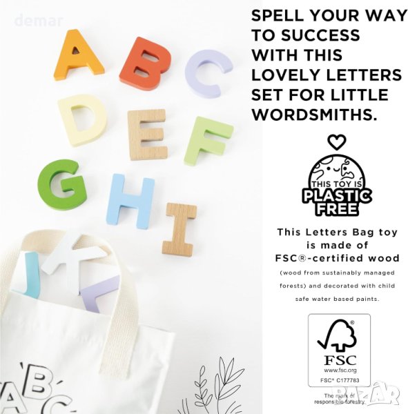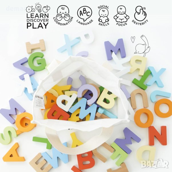 Този креативен комплект за обучение по правопис е фантастичен инструмент за изучаване на азбуката и изследване на правописа. С 60 красиво изработени дървени букви, той предизвиква интерес към правописа, като същевременно подпомага разпознаването на цветове чрез съвременни цветове. Тези екологични, устойчиви FSC дървени букви са страхотна играчка за учене. Изработен в класическия стил на Le Toy Van, този възхитителен комплект за правопис включва памучна чанта за съхранение за лесно прибиране в края на натоварения ден. Това е идеален подарък за момчета или момичета, тъй като образователните играчки насърчават ученето чрез игра и осигуряват забавление за правопис без пластмаса. С 60 части в комплект, включващи различни букви, форми и цветове, той насърчава изследването на правописа и прави ученето приятно. Безопасността е основен приоритет, тъй като комплектът е декориран с бои на водна основа, устойчиви на стружки, нетоксични и тествани, за да отговарят на най-високите стандарти за безопасност. Този комплект букви в чанта без пластмаса включва 60 отделни букви и памучна чанта за съхранение за удобство.
