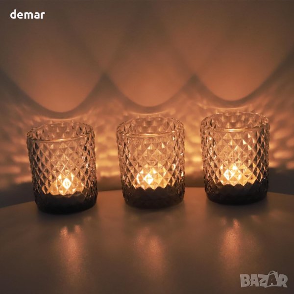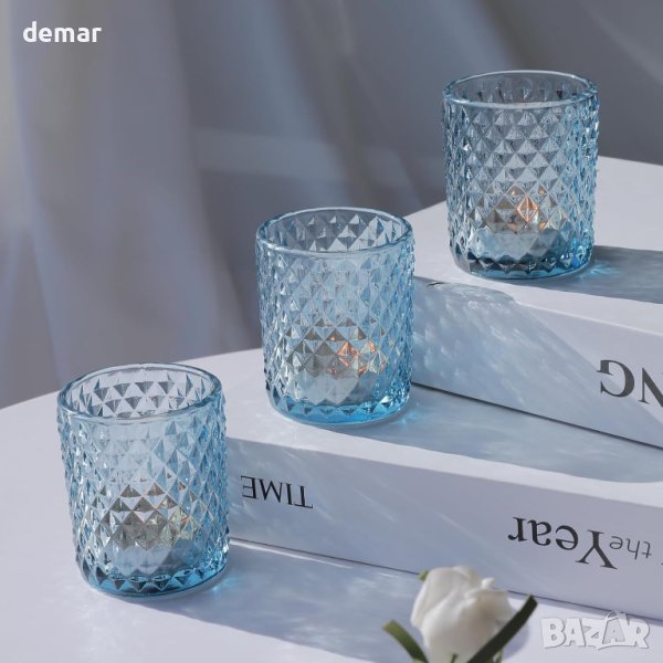 Представяме ви нашите поставки за чаена лампа Blue Diamond - уникална комбинация от стил и елегантност. Тези държачи се отличават с деликатен син/аква нюанс и очарователен диамантен модел, който улавя и отразява красиво топлата светлина на свещите, създавайки бохо атмосфера. Перфектни за подобряване на атмосферата на сватби, рождени дни, банкети и други специални поводи, те ще ви оставят със скъпи спомени. С размери 5,3 см Д x 5,3 св Ш x 6,2 см В и тегло 100 гр. всяка, те побират различни свещи, включително оброчни, чаени и безпламъчни LED свещи. Тези универсални държачи са идеални за празничен декор, като Великден, Хелоуин, Деня на благодарността, Коледа, Свети Валентин и Ден на майката. Изработени от висококачествено, топлоустойчиво стъкло, те са щателно полирани и грижливо опаковани, за да гарантират, че ще пристигнат безопасно. Тези поставки за чаени свещи също са внимателен и стоплящ сърцето подарък за приятели и семейство по време на есенни и зимни сезони, носещи топлина и щастие в домовете им.Закупено от Amazon: www.amazon.co.uk/dp/B0CGX6G6NK?th=1