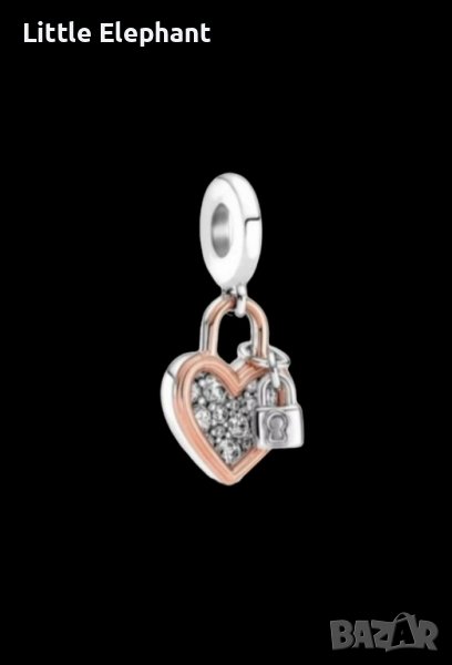 Сребърен висящ елемент Пандора,сърце-катинар с ключ Пандора,"Влюбени",Rose Gold/нов → Обява 43118718