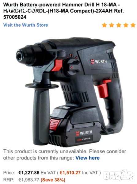 Продавам безчетков акумулаторен перфоратор на Вюрт в перфектно визуално и техническо състояние е комплекта, модела е идентичен на Bosch GBH 18V-EC, внос от Франция. Комплекта включва перфоратор с ръкохватка който работи отлично, 2 батерии по 18V 4.0Ah с индикатор и бързо зарядно. Пращаме с опция преглед и тест с куриерска фирма еконт може и лично предаване за гр. Шумен.