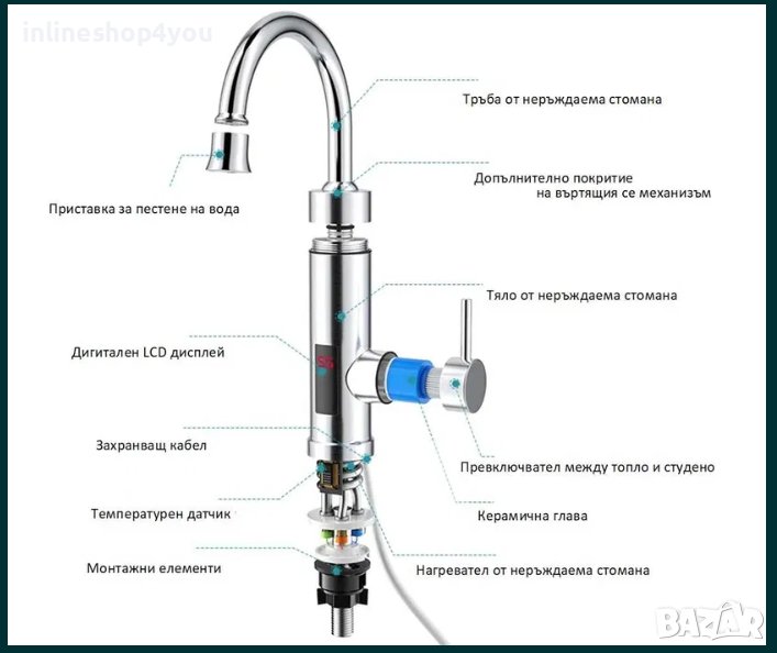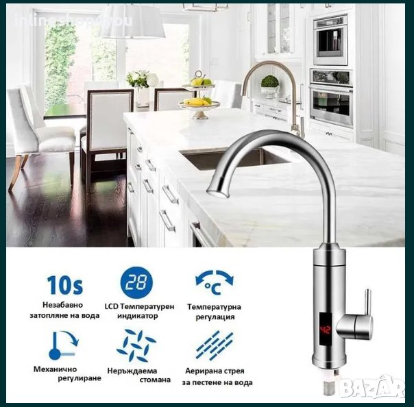 Конструкция от неръждаема стомана, издръжлива, елегантна и стилна. Лесен за инсталиране на плот-дупка, безопасен нагревател,