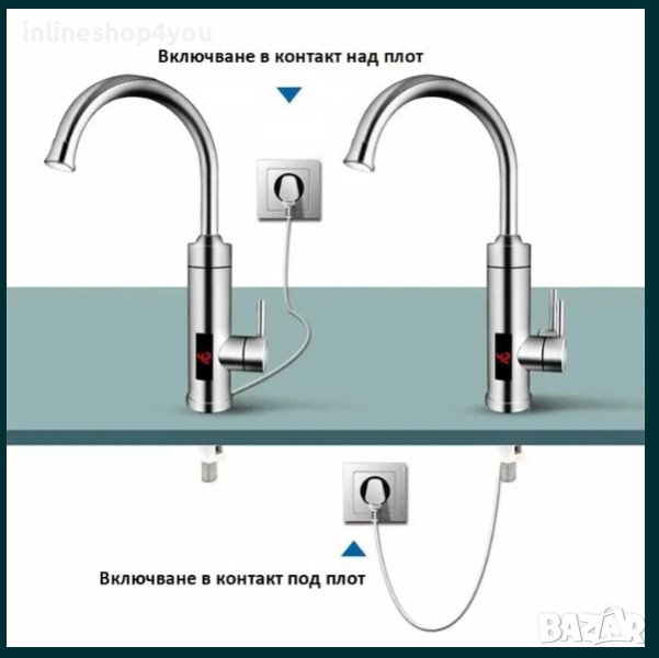Уреда не може да се включи при налягане на водата по ниско от 2 бара. Захранващия кабел е с накрайник е БГ стандарт, може да бъде включен под плот и над плот.