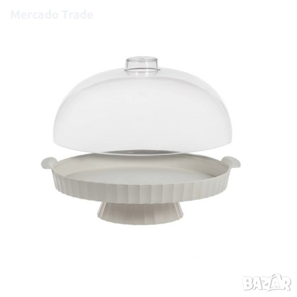 Пластмасова кутия за сладкиши, 30см в бежов цвят с крак 5.5см, дръжки и прозрачен капак.