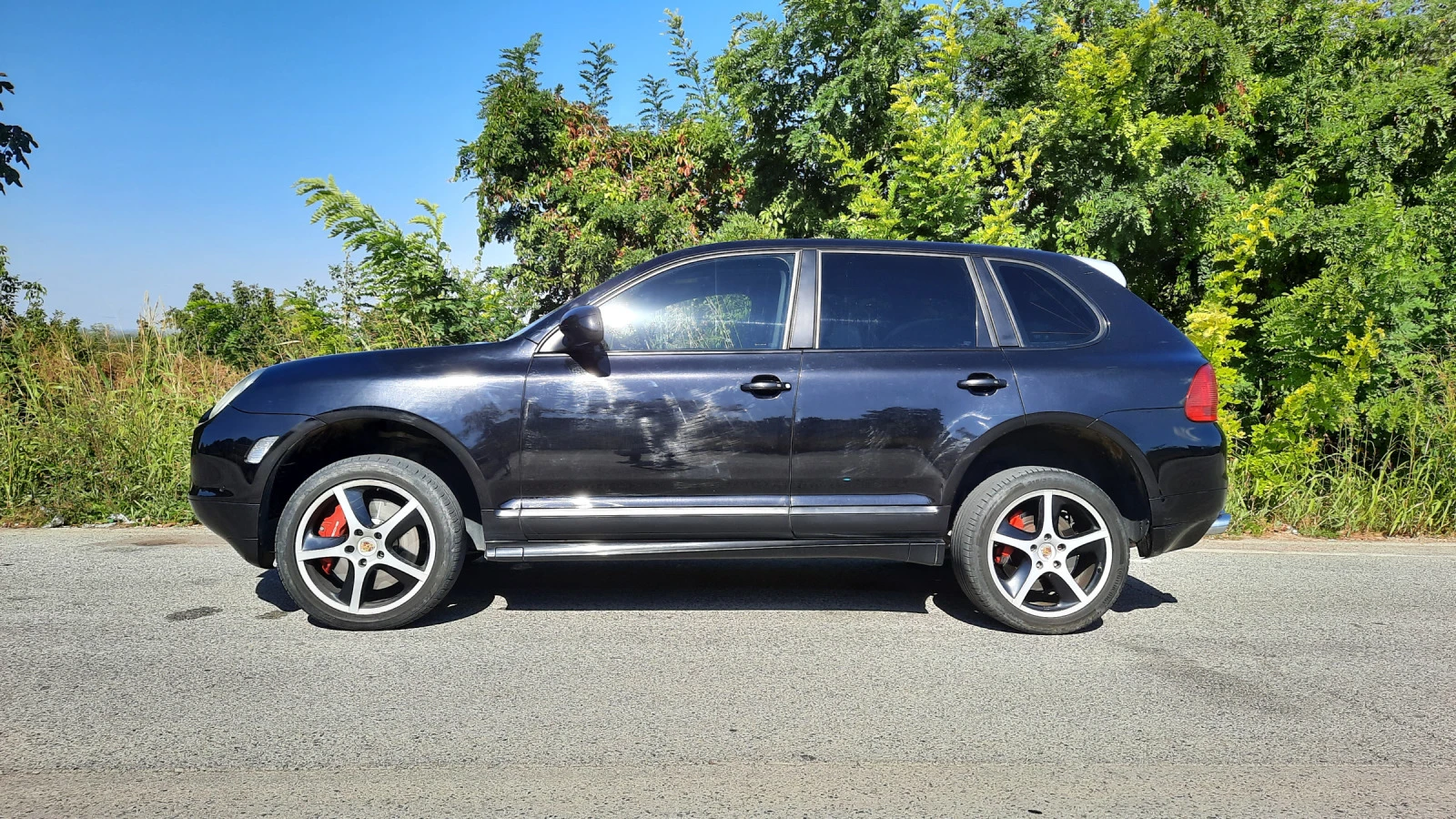 Автентичен Cayenne 955 Turbo S, 521 к. с. (383 kw), произвеждан само през 2006 г. , в оригинален вид. Не е Е81! Купен нов в България, аз съм трети собственик. Прословутите протичащи пластмасови тръби на охладителната система са сменени с алуминиеви. Платен данък, редовни документи, легален за каране. Задължително прехвърляне! Никога не е имал газова уредба. Налични катализатори. Сертификат Euro 4. Трета екологична група по българските стандарти за технически преглед. Налични двата оригинални ключа. Налично оригиналното оборудване: инструменти, триъгълник, устройство за помпане на гуми. Sport Design пакет. Панорамен таван. Адаптивно окачване с автоматично регулиране на клиренса, в зависимост от скоростта. Също и ръчно регулиране на клиренса, както и твърдостта на окачването. Рядко срещания 4 зонов климатроник. Подгряване на четирите основни седалки и волана. Два комплекта джанти с гуми, 19 инча със зимни гуми и 20 инча Sport Techno, в цвета на купето, с летни гуми. Двигател, скорости, блокаж на диференциала, понижаваща предавка, окачване, системи за безопасност, екстри, всичко функционира изрядно. Проверка на състоянието в сервиз по избор. Възможен личен тест от купувача срещу предоставен депозит в размер на 2/3 от обявената цена, който се връща само ако не бъдат причинени щети на автомобила. Един куп екстри, които не са особено важни. Съществено важното е, че двигателят разполага с 521 к. с. и 720 н. м. въртящ момент, което превръща колата в най-бързото серийно SUV в света през 2006 г. Също така е и най-мощният сериен модел в цялата гама на Porsche по това време. От другата страна на възможностите й са понижаваща предавка, блокиране на централния диференциал, увеличаване на клиренса над 20 (27 при вариантите без Sport Design пакет) см. и тракшън контрол с офроуд карта при включени бавни скорости. Всичко това пък превръща колата в един много бърз начин човек да отиде на къмпинг, ако му е спешно.