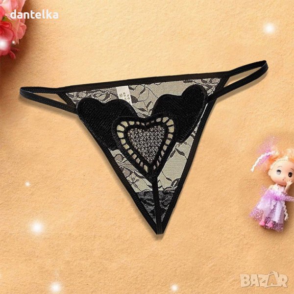 Сексапилни прашки в черен цвят със сърчица, за най-дръзките дами. Невинни, деликатни и възхитително изкушаващи дантелени прашки, подчертаващи вашия сексапил. А вашият любим? Ще завладеете мислите му със сладката изненада, която се крие под тази прашка със закачлива бродерия. Еротична прашка, която е силно сексапилна и води към съблазнителен и вдъхновяващ поглед на сетивата към изкушението.
