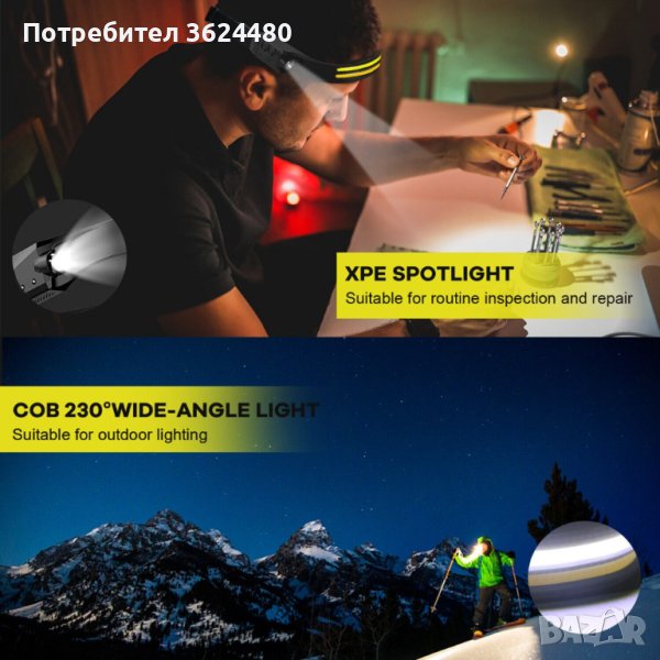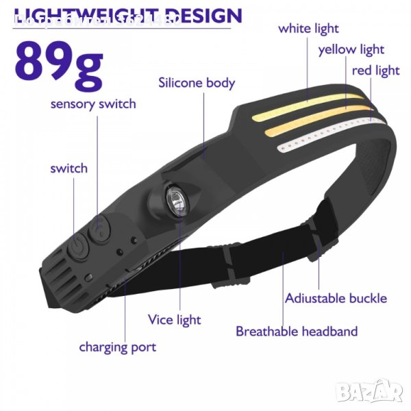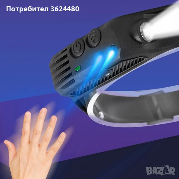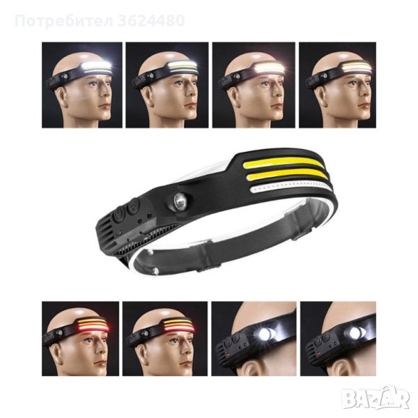 Челник за глава със сензор с жест на ръката с 3 COB ленти
