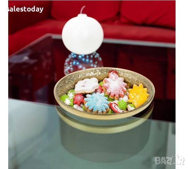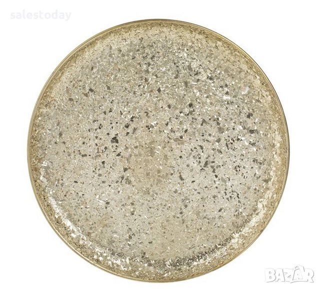 Декоративно метално плато, с декорация тип мозайка в цвят шампанско Ø30см