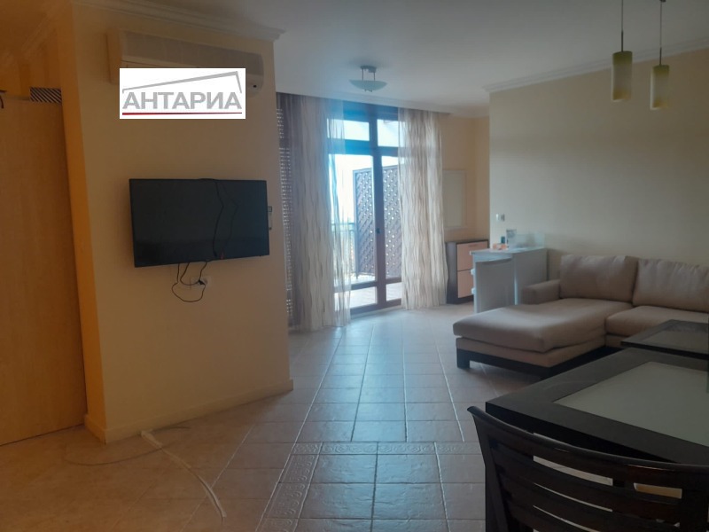 Апартаментът е на четвърти етаж, разпределен в антре, дневна с кухненски бокс, зона за спане, която може да бъде отделена, баня с тоалетна и просторна тераса с изглед към морето и остров Свети Иван. В цената е включено цялостно обзавеждане. Апартаментът е готов за ползване или отдаване под наем.