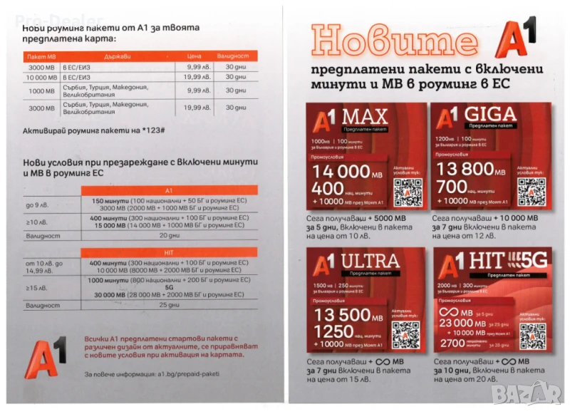 eSIM Предплатен пакет А1 HIT- 12лв. 6.14€