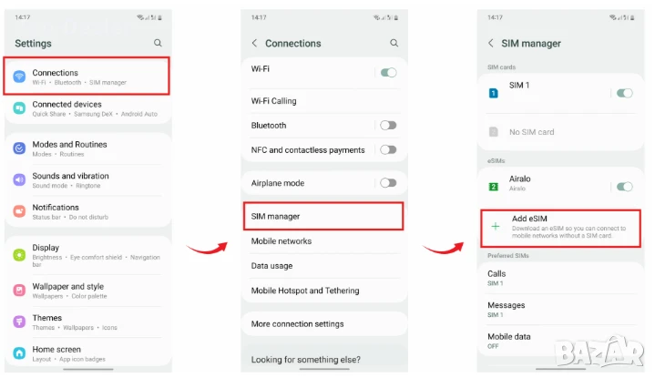еSIM е стандарт за SIM карти, при който картата е вградена в телефона - не се поставя и не използва физическа SIM карта.
