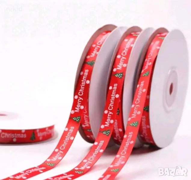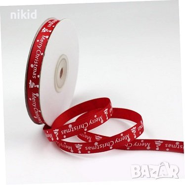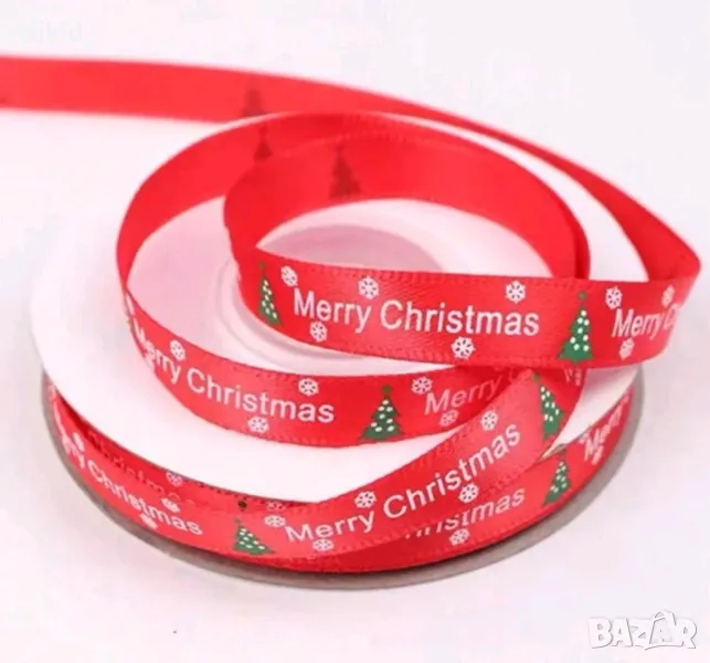 Сатенена лента панделка от сатен коледна с надпис Merry Christmas за декор ръчна изработка → Обява 43130934