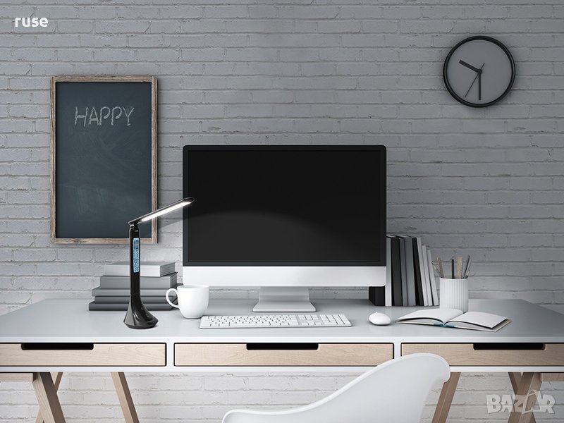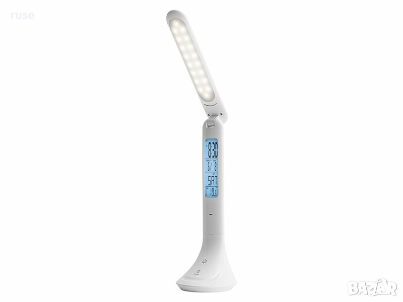 НОВИ! LED настолна лампа акумулаторна часовник/ будилник Два цвята