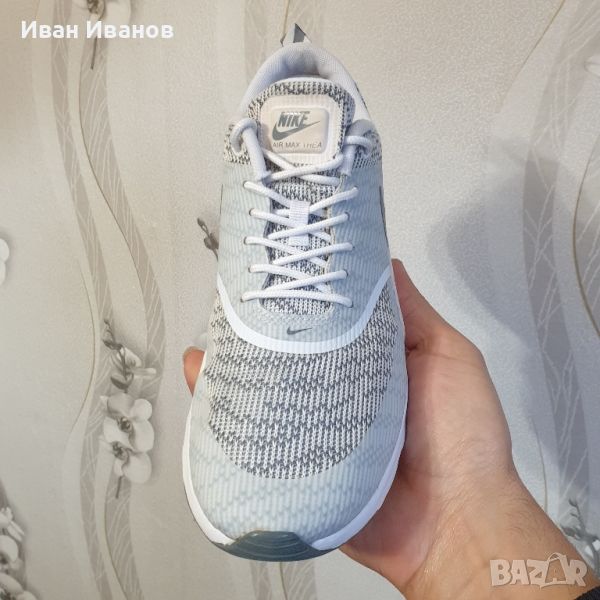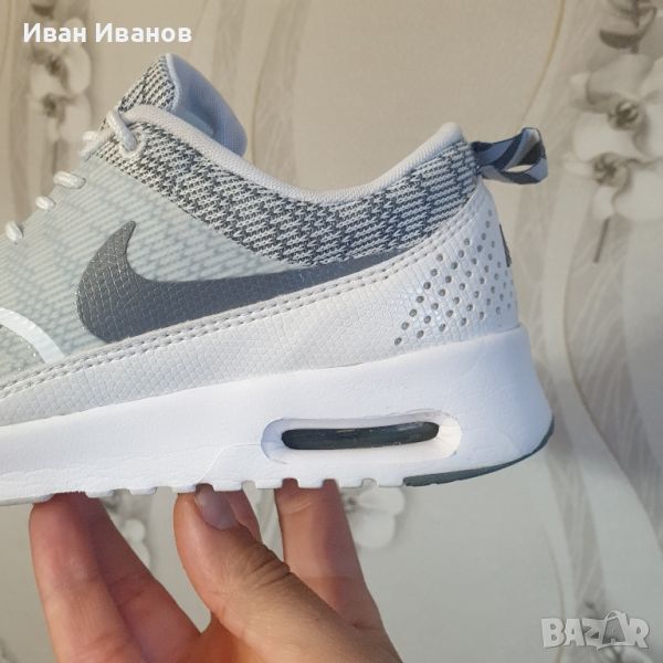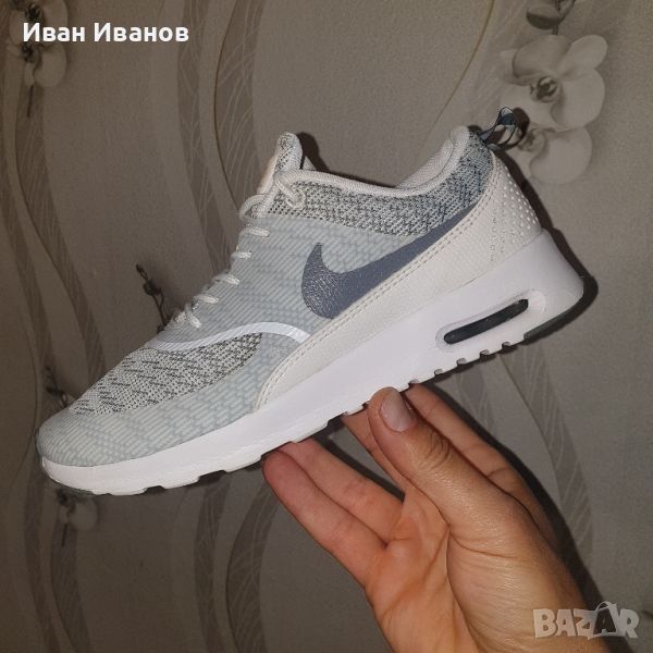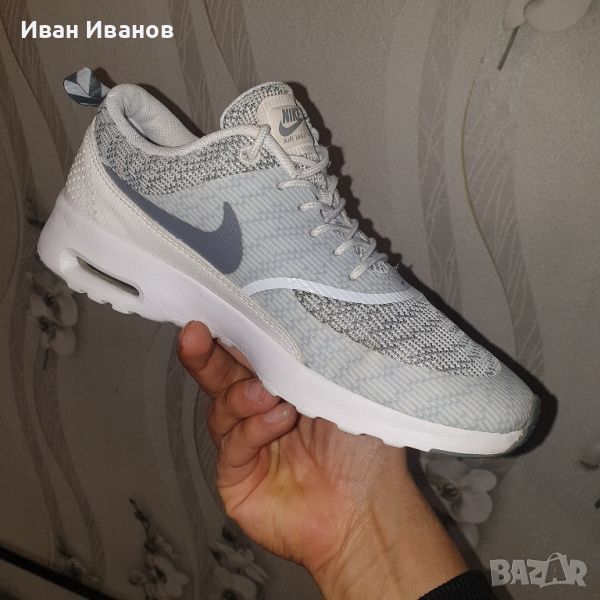 Малко използвани , с минимални следи много красиви , модерни , леки и удобни . Дишаща мрежеста горна част.Произведени с безшевни топлинно залепени съединения.Подвижна стелка.Термично запечатано лого на Nike Много лека и гъвкава EVA подметка тип вафла за много естествен протектор, с гумени пръсти и пета за по-голяма издръжливост и сцепление.Капсулиран въздушен модул за допълнително омекотяване. Горната част е изработена от текстилни материали и синтетични елементи. Висококачествените подгъви и покрития гарантират висока издръжливост на обувките и най-висок комфорт при употреба. Подметката е изработена от твърда и износоустойчива гума. Материал Phylon (разположен в междинната подметка и възглавницата AIR MAX осигурява отлично омекотяване.Удобните обувки от Nike Nike Air Max Thea са перфектен избор за всеки ежедневен тоалет. Тези обувки ще добавят стил към вашия гардероб. Облечете ги и отидете на разходка, работа или разглеждане на нови места.