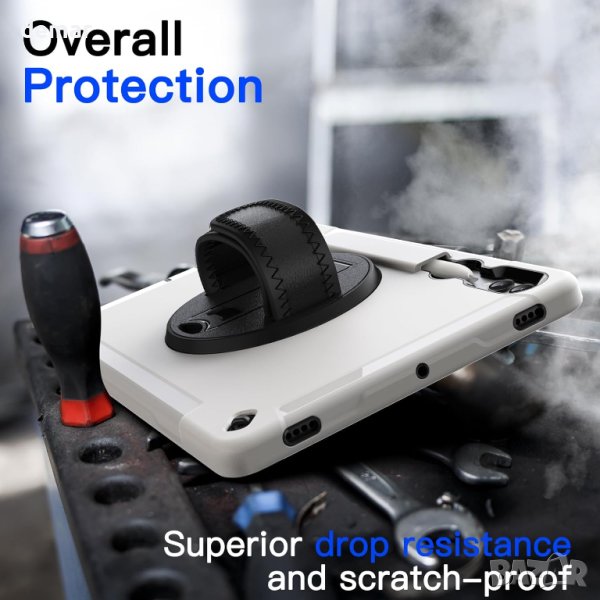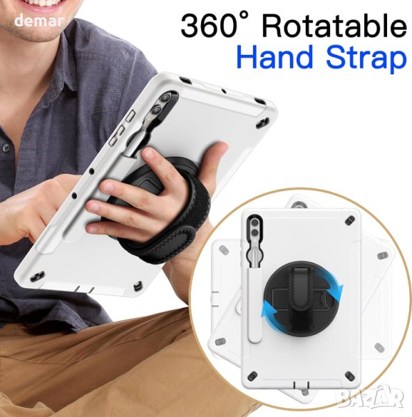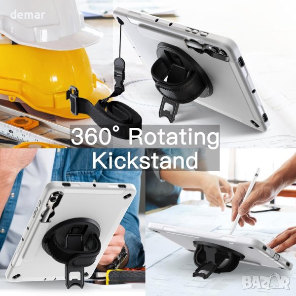 Калъф за държач на S Pen Holder, предназначен изключително за Samsung Galaxy Tab S9+ / S9 Plus 12,4 инча (S Pen не е включен). Този калъф предлага издръжлива защита с 3-слоен дизайн, който включва преден капак за компютър с вграден PET протектор за екран, твърда вътрешна обвивка за компютър и гъвкава задна обвивка от TPU, предпазвайки вашето устройство от изпускане, надраскване и удари. Насладете се на гледане със свободни ръце, рисуване или писане с въртящата се на 360° стойка и регулируема каишка за ръка. В допълнение, подвижна и регулируема презрамка позволява удобно носене на таблета, независимо дали у дома, на работа или в движение. Прецизните изрези осигуряват лесен достъп до всички портове. Този лесен за използване калъф е идеален за студенти, учители, инженери и др.