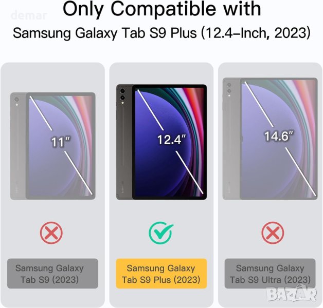 Калъф за Samsung Galaxy Tab S9 Plus 12,4-инча с вграден протектор за екрана и държач за S Pen