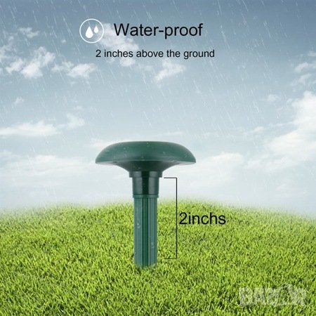 Устройство захранвано от слънчевата енергия, което излъчва ултразвукови вълни, за да отблъсне вредните гризачи (къртици, полевки и т.н.).