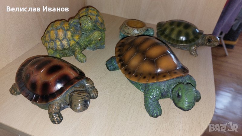 Колекция градинска/домашна декорация костенурки от полирезин. 5 броя фигури в различни размери. → Обява 43135733