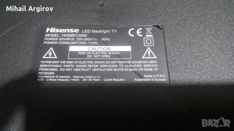 Hisense H43MEC3050/RSAG7.820.6392/ROH/-HLL-4855WR/T500QVN03.0 CTRL BD → Обява 43136224