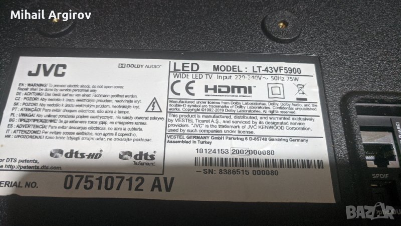 JVC -LT43VF5900/17MB211S/17IPS62/PT430CT02-1-C → Обява 43136233
