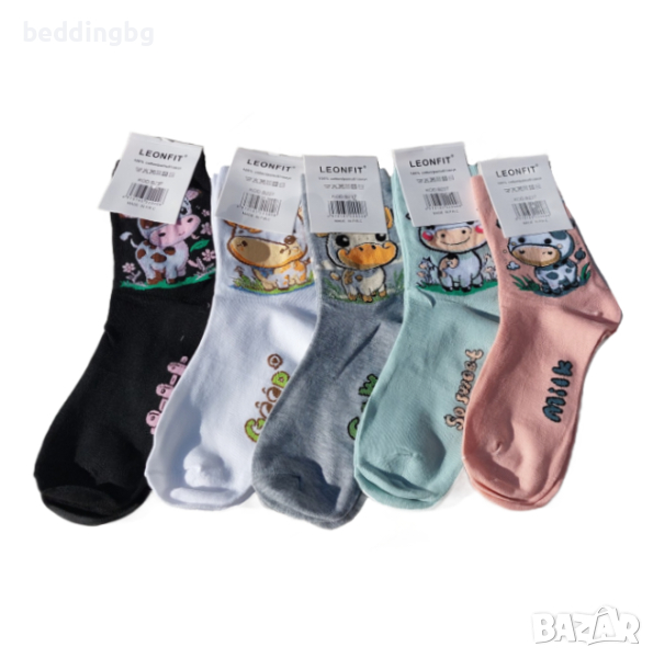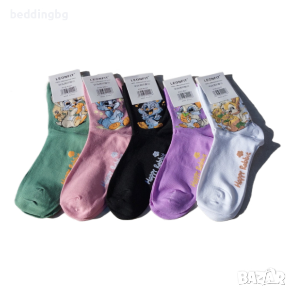 Памучни чорапи 5чф. Пет цвята, пет различни весели картинки.