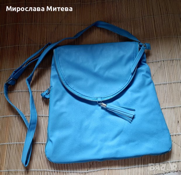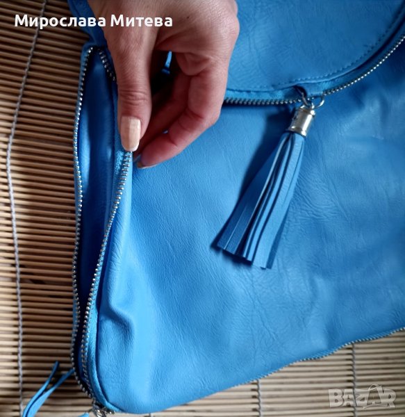 3. Синя чанта през рамото - размери 34/33/2 см - 15лв