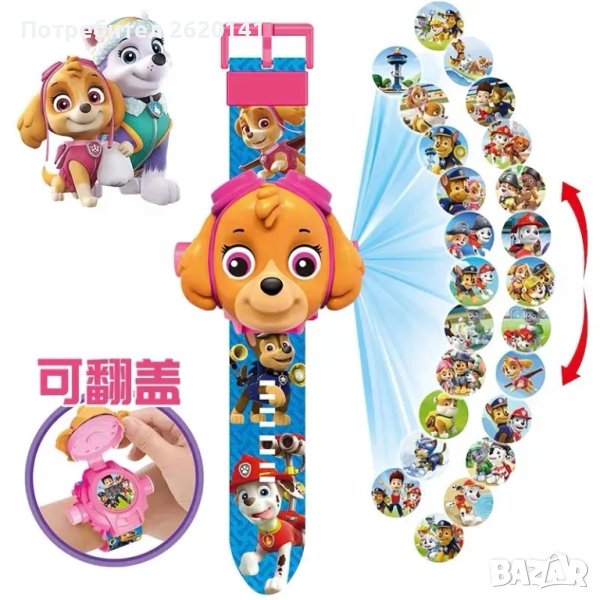 Уникален Часовник Пес Патрул с Прожекции, Чейс, освен, че ще покаже часа и датата, прожектира изображения на популярни герои от комикси и анимационни филми. Натиснете страничния бутон, и той ще покаже изображенията. Това е наистина един страхотен подарък за Коледа, рожден ден или всеки специален повод.
