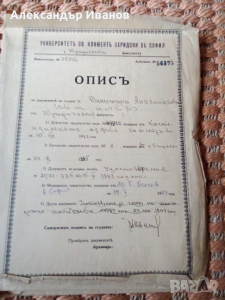 Стар документ Свидетелство за зрелост 1942 г. → Обява 43141451