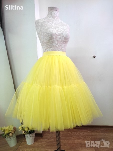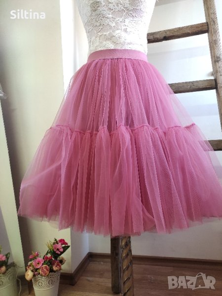 Тюлена туту пола тип "американка". Много богата и кокетна. Колана за повече удобство е с ластик. Изработена от фин италиански тюл и подплата. Дължина на полата е пожелание на клиента. Размер на талията XS- 70, S- 74, M- 78, L- 82, XL- 86 . За повече информация във фейсбук Siltina