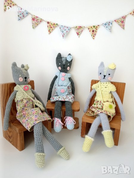 Плетени играчки, котенца с рокли и чанти, играчки за деца, коледен подарък за дете, ръчна изработка → Обява 43142447